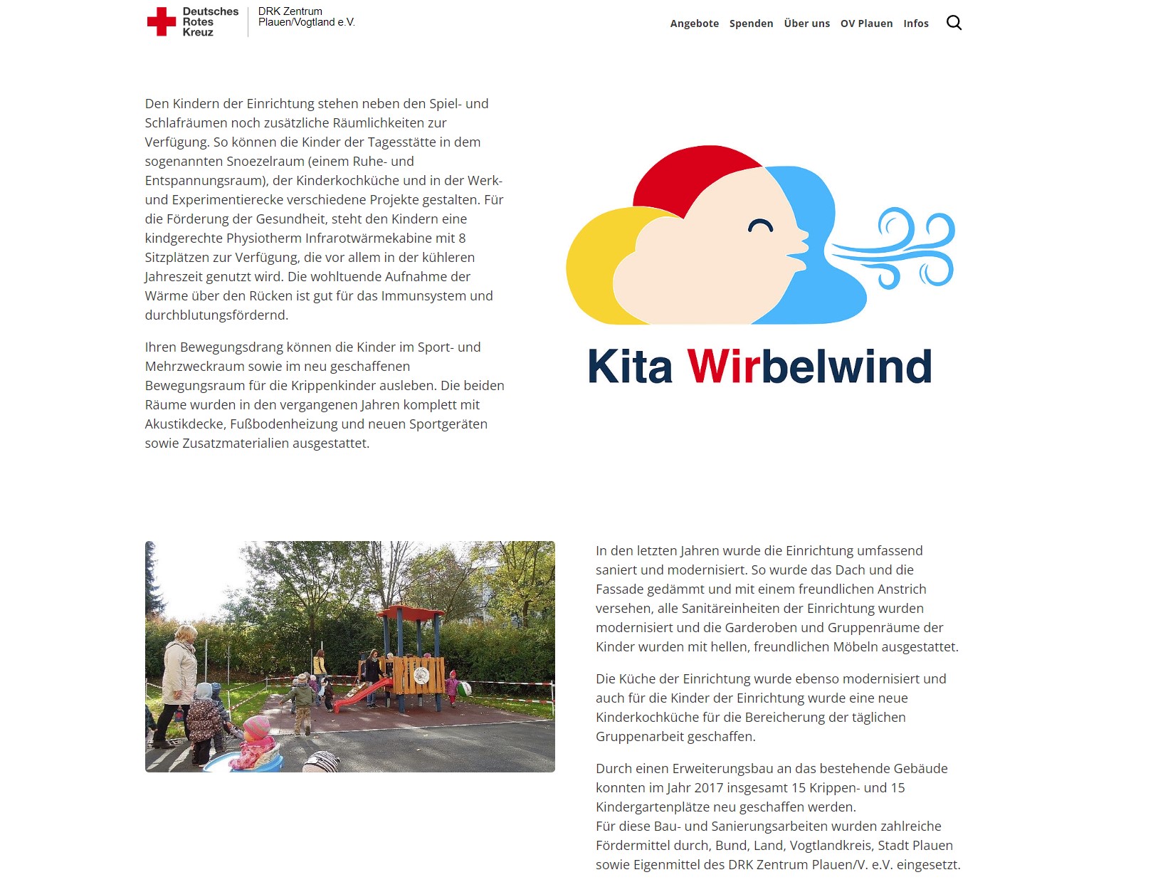 Unser 6500 m² große Garten wird gerne von den Gruppen genutzt. In den 4 verschiedenen Spielbereichen (für Krippenkinder, für 3–4 jährige und für 5-6 jährige Kinder sowie für Hortkinder) gibt es viele Möglichkeiten zum Spielen und Bewegen: Sandkästen, Schaukeln, Klettergerüste, Rutschen, Wackelbrücke, Bolzplatz, Federwippe, Sinnesweg, verschiedene Fahrzeuge und vieles mehr.